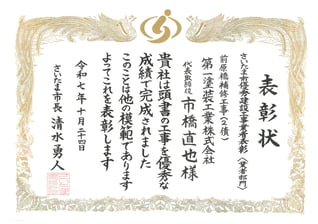 前原橋補修工事(2債)が、「第20回 令和7年度さいたま市優秀工事業者」を受賞しました。